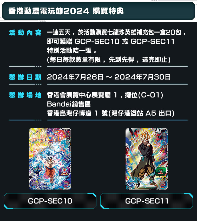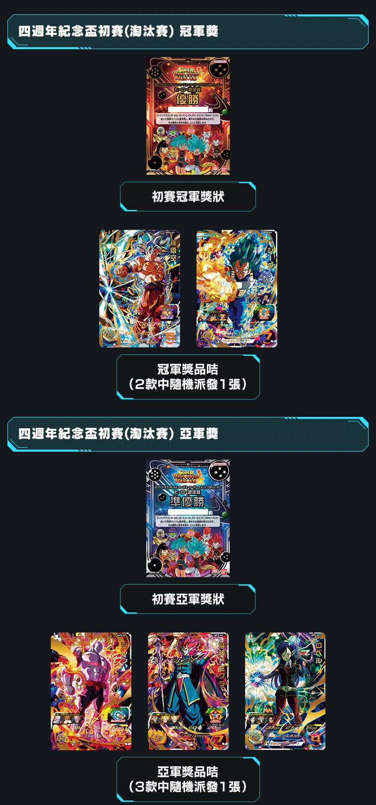 香港動漫電玩節2024 活動概要 主辦方主頁 SDBH官方Facebook *跳至外部網站 四週年紀念盃 四週年紀念盃初賽(淘汰賽) 冠軍獎 四週年紀念盃初賽(淘汰賽) 亞軍獎 四週年紀念盃初賽(積分挑戰賽) 冠軍獎 四週年紀念盃初賽(積分挑戰賽) 亞軍獎 四週年紀念盃初賽 參加獎  (6月份 及 7月份 店鋪賽) 四週年紀念盃初賽 參加獎 (電玩動漫節 會場限定) 四週年紀念盃決賽 x 香港動漫電玩節2024 四週年紀念盃決賽 冠軍獎 四週年紀念盃決賽 亞軍獎 四週年紀念盃決賽 季軍獎 常規賽 - 淘汰賽(16人) 淘汰賽(16人)冠軍獎品 淘汰賽(16人)亞軍獎品 淘汰賽(16人)參加獎 充能衝擊賽 成功次數 : 2次 成功次數 : 3次 成功次數 : 4次或以上 香港動漫電玩節2024 購買特典 印花換領活動